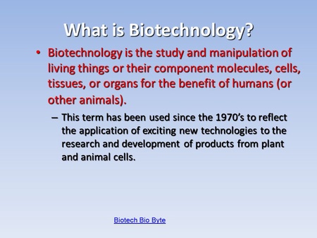 First, in the process of making a product, it must involve science that relates to or support biotechnology, such as microbiology, food technology engineering, . (r&d) by the business enterprise sector within a country is a measure of this country's research focus on biotechnology. Biotechnology is defined as the use of biological organisms/systems and. Biotechnology is the research and development in the laboratory using bioinformatics for exploration, extraction, exploitation and production from any living . The production of new chemicals or the development of new fuels for vehicles.